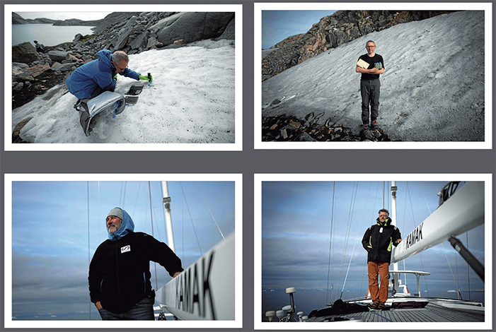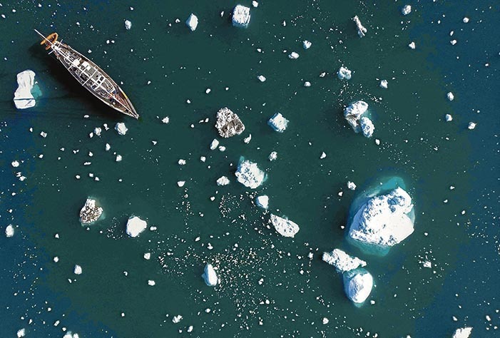 08 OCT. 2023 FOTOREPORTAJE Misión por los fiordos más grandes de Groenlandia El velero “Kamak” de esta expedición científica navegando entre bloques de hielo. Fotografías: Olivier Morin | AFP (Olivier Morin AFP) Olivier Morin | AFP El Scoresby Sund o Kangertittivaq es el mayor conjunto de fiordos del mundo. Misterioso y espectacular, bloqueado once de cada doce meses por el hielo, en agosto recibió la visita de una expedición científica francesa buscando ampliar conocimientos sobre los efectos del calentamiento global que allí se nota intensamente. La tarea se centró en la recogida de muestras de nieve y microorganismos marinos. Ittoqqortoormiit, situada en el este de Groenlandia. Se trata de un lugar que tiene una población de unos 300 habitantes en el fiordo Scoresby Sund, por su nombre danés, o Kangertittivaq, en groenlandés. Al lado de la imagen de la aldea, el biólogo Florian de Bettignies filmando el pasado mes de agosto un iceberg liberado por un glaciar debido a las temperaturas cálidas del verano. Esos icebergs también se aprecian en el resto de las fotografías de estas páginas. La piel de un oso polar secándose en la aldea de Ittoqqortoormiit. Las altas temperaturas provocan imágenes como esta, un glaciar alrededor de “Constable Point” severamente derretido. Algunos icebergs son montículos cubiertos de capas de nieve, otros parecen monolitos azules tallados de grandes dimensiones, incluso llegan a ser más altos que muchos edificios. El velero “Kamak” entre icebergs, con el riesgo que supone la posibilidad de chocar con ellos. Los miembros de la expedición Greenlandia temen que la próxima generación de científicos observará un derretimiento masivo en Groenlandia, razón por la que consideran importante documentar la situación con todas las muestras posibles. Arriba, el biólogo Eric Marechal estudiando las capas de algas en la nieve cerca de los glaciares alrededor de Milne Land en el fiordo de Scoresby Sund. Al lado, Marechal sosteniendo una edición original de 1819 del libro “Voyage of Discovery”, del explorador ártico John Ross. Abajo, a la izquierda, el jefe de la expedición Vincent Hilaire a bordo del “Kamak” y navegando alrededor de Milne Land. A la derecha, el capitán del velero David Delample posa durante un descanso. Junto a estas líneas, pescadores de Ittoqqortoormiit. Un iceberg derritiéndose.