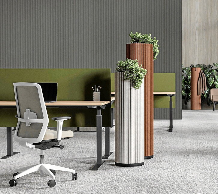 Uno de los principales problemas de trabajar en un espacio abierto es el ruido. Nuestra capacidad de concentración es frágil, la verdad sea dicha, y es por ello que cada vez más se integran elementos y paneles acústicos con los que mitigar o absorber esos ruidos exteriores con los que evitar el ruido interior. La marca de muebles de oficina Narbutas ha añadido una columna absorbente de sonido llamada Parthos a su colección de muebles acústicos. Narbutas diseñó la columna Parthos para que fuera un extra elegante a los interiores de las oficinas, con un diseño móvil que se puede desplazar fácilmente para mejorar la acústica del espacio en el que se encuentra. Para proporcionar absorción de sonido de una manera sostenible, Narbutas llenó las columnas con cortes textiles y cubrió el exterior con fieltro PET hecho de plástico reciclado al 50 por ciento. Parthos está disponible en tres alturas y se puede utilizar como soporte de exhibición o peana. También se puede personalizar añadiendo una estación de carga o con ganchos para colgar la ropa. https://www.narbutas.com/