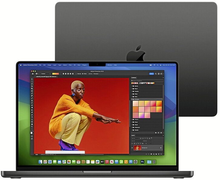 La nueva generación de portátiles Apple apuesta por una potencia aún mayor con tres nuevos chips entre los que elegir a la hora de configurar nuestro modelo: el M3, el M3 Pro y el M3 Max. Estos consiguen que la velocidad mejore en un 40% respecto a sus predecesores, junto con la memoria unificada -es decir, la memoria RAM compartida entre CPU y GPU- de hasta 128 GB y un almacenamiento máximo de 8 TB. La pantalla Liquid Retina XDR retroiluminada con tasa de refresco de 120 Hz está disponible en 14 o 16 pulgadas, lo que permite una experiencia multimedia completa unida a la webcam FaceTime HD a 1080p y el sistema de seis altavoces con Dolby Atmos. Además de tener carga rápida de 96 W, la batería dura hasta 22 horas reproduciendo video y al igual que los últimos productos de la firma, se alimenta mediante cable USB de tipo C.