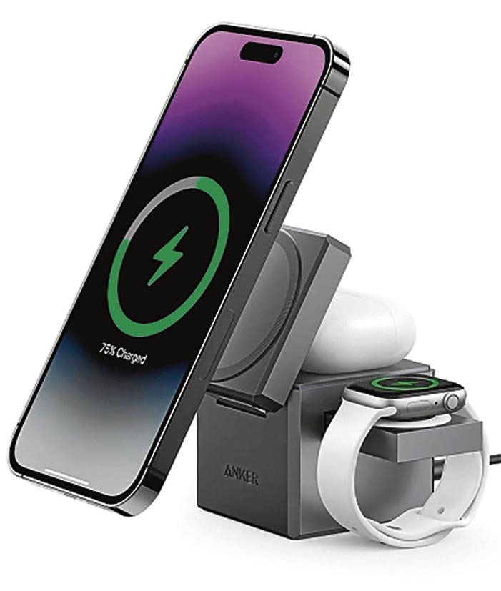 Esta unidad de carga inalámbrica de Anker para tres dispositivos se pliega en un cómodo cubo para transportarlo y dispone de potencia de carga de 30 W. Es compatible con productos Apple e incluye MagSafe mientras se puede conectar a la red eléctrica con USB-C.