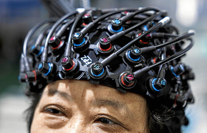 Una mujer utiliza una máquina de monitoreo cerebral, propiedad de la empresa china Yiruide Group, durante la Exposición Mundial de la Salud de 2024 que se celebra anualmente en Wuhan. La imagen se tomó el pasado 7 de abril, coincidiendo con el Día Mundial de la Salud y con la inauguración de esta feria, que se organiza desde 2019 en esta ciudad de doce millones de habitantes que ese año cobró notoriedad mundial por ser el lugar donde se originó el brote epidémico de SARS-CoV-2, el virus que provoca la enfermedad del covid-19 y dio lugar a una pandemia de dimensión planetaria. Desde entonces, esta exposición, la única dedicada al sector a nivel nacional en China, no falta a la cita. El certamen tiene su importancia porque abarca casi toda la cadena industrial de la salud, en la que entran desde equipos médicos a medicamentos bioquímicos, pasando por tecnología médica y, tratándose de China, también integra la medicina tradicional y el cuidado de ancianos. Hasta hace poco, la imagen representativa de la salud era alguien caminando por el monte, respirando aire puro a pleno pulmón y mostrando una sonrisa radiante. Más de la mitad de la población mundial no puede acceder a servicios de salud esenciales. En una sociedad tan tecnológica como la actual, la salud también se representa a base de cables, ¿útiles y necesarios?, quizás, probablemente.. pero al fin y al cabo, cables.