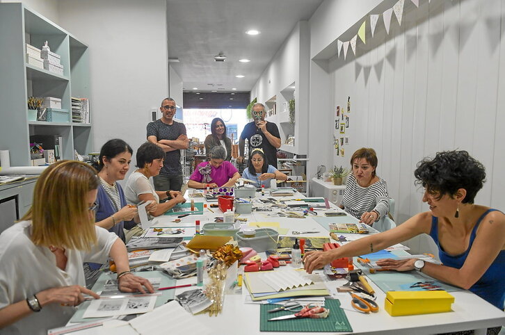 Marisa Maestre es uno de los referentes actuales del collage estatal. A finales de mayo, vino a Iruñea porque Tacto Sutil le invitó a que les formara con un taller. «Lo que me sorprendió es que fueran tan trabajadores: el entusiasmo que ponían por todo», confiesa.