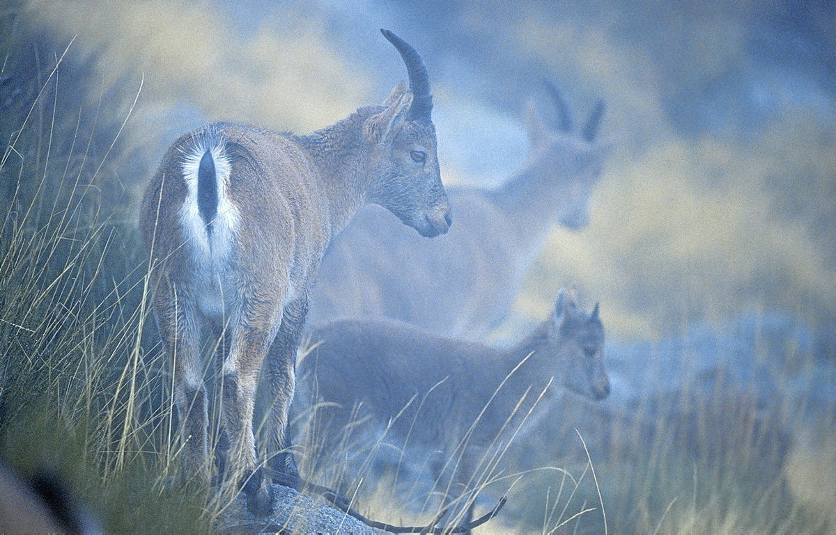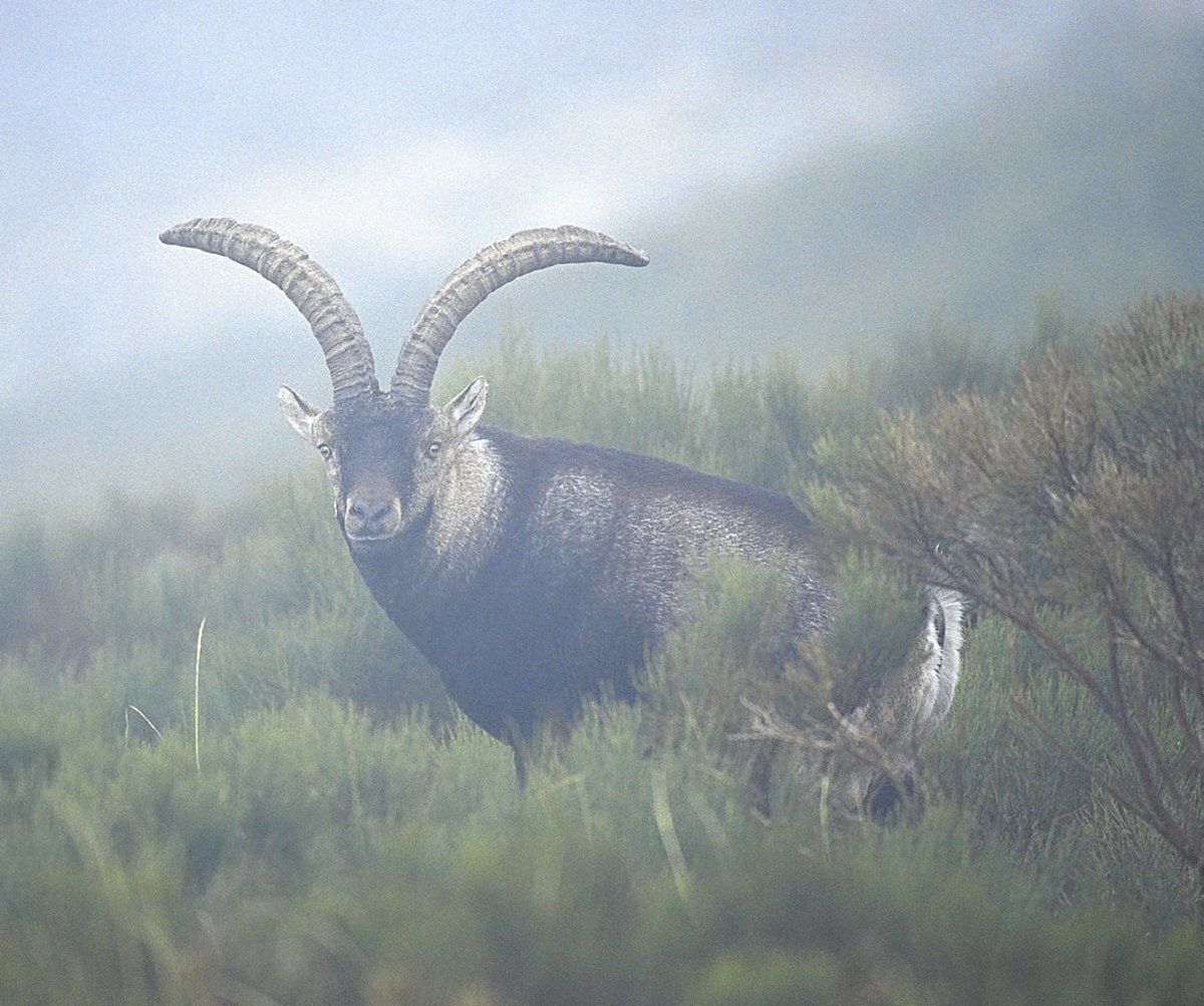 El siguiente reportaje fotográfico está compuesto en su mayoría por imágenes de la especie de cabra montés inmersas en ambientes nebulosos, propiciados por nieblas y lloviznas. Esta visión, además de resultar especialmente acorde con esta época del año, transmite atmósferas evanescentes, de calma, con tonos pastel y suaves difuminados que, más que fotografías, nos evocan pinturas. Escenas cargadas de poesía visual en cuanto a esta especie en fusión con su entorno. Viajamos para ello hasta la sierra de Gredos.