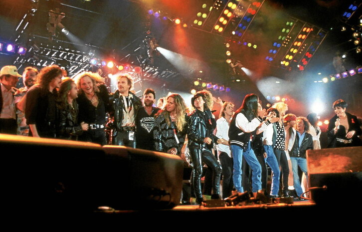 Tal día como hoy hace 33 años, el 20 de abril de 1992, el estadio londinense de Wembley acogía un monumental homenaje póstumo a Freddie Mercury, el carismático cantante y pianista de Queen que había fallecido de sida cinco meses antes, a los 45 años. La idea fue de Brian May, John Deacon y Roger Taylor, sus tres compañeros de grupo, que tiraron de agenda para organizar un concierto con la presencia de muchos de los grandes músicos del momento y que además sirviera para recaudar fondos para la creación de Mercury Phoenix Trust, fundación contra el VIH. George Michael, David Bowie, Annie Lennox, Lisa Stansfield, Paul Young, Guns N'Roses, Elton John, Robert Plant, Metallica, Seal, Extreme, Def Leppard, Ian Hunter, Mick Ronson, Roger Daltrey, Bob Geldof, Tony Iommi, Zucchero, Liza Minelli, Spın̈al Tap o Chris Thompson estuvieron sobre el escenario ante 72.000 espectadores en directo, y por radio y televisión frente a 500 millones de personas, que fue la audiencia estimada de la retransmisión del evento a 76 países. Heavy metal para empezar, rock y pop para seguir, con artistas actuando junto a Queen o en curiosas combinaciones como la de Elton John y Axl Rose, este con falda, en ese histórico show al que se llamó “Concierto por la vida”, que debía servir para la concienciación sobre la importancia de la protección frente al virus. De esto se encargó la legendaria actriz Elisabeth Taylor.