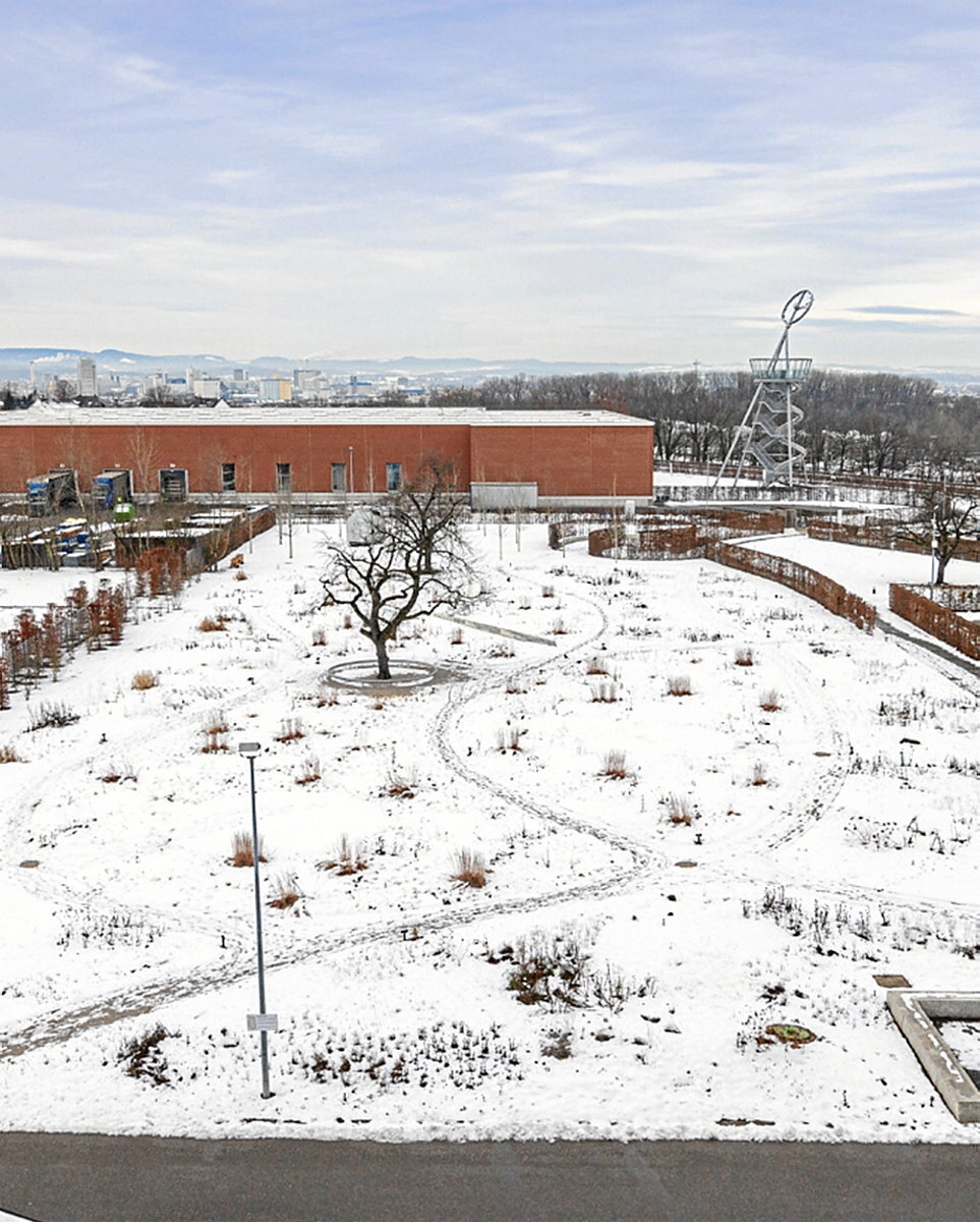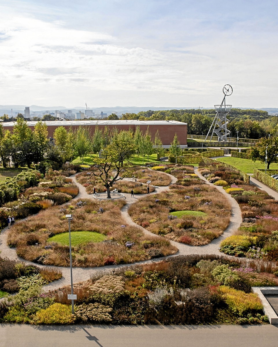 Lorategiak eraikinen ikuspegia osatzen du, haien oihal horizontala legez, zorua biziki margotzen du paisajistaren konposizioak eta perspektiba berriak ematen dizkie. Bisitaria bidezidor bihurretan barrena galtzea da helburua, topaketa hori emozionala bezain estetikoa izan dadin.