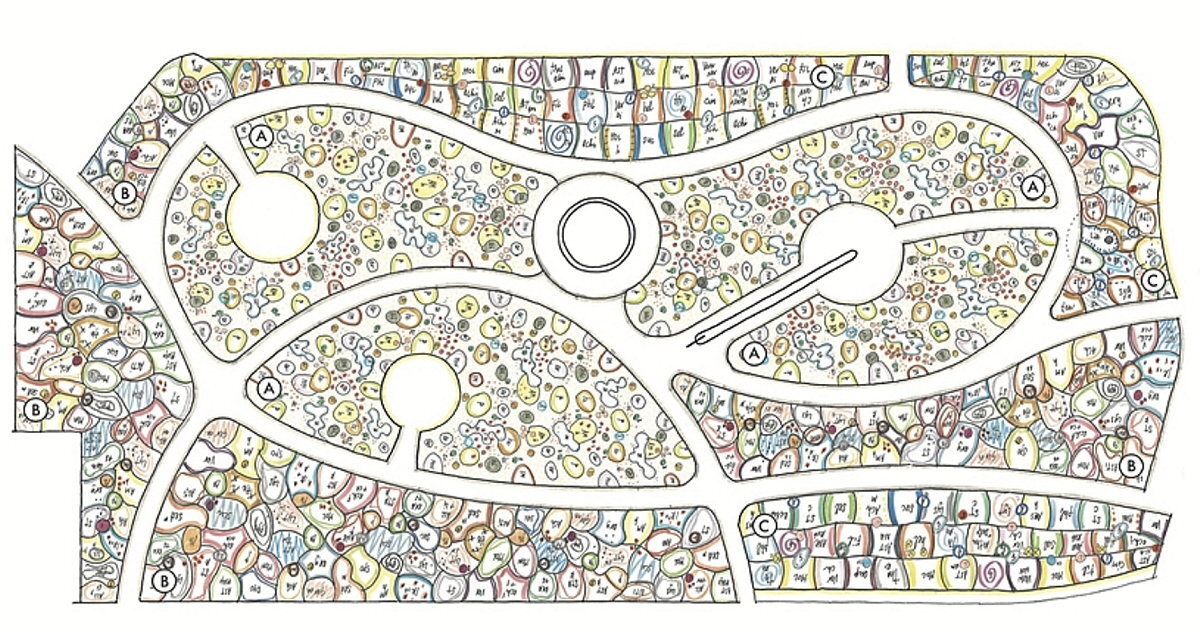 Mosaiko koloretsua eratzeko, 30.000 landare inguru erabili dira, besteak beste, Persicaria amplexicaul Alba, Echinacea pallida, edota Molinia caerulea. Oudolfek urte osoan zehar landareek dituzten ezaugarriei erreparatzen die, eta horien edertasuna islatzea du helburu; esaterako, udaberrian loratzen den landare batek azaroan eskeleto erakargarria izan dezake, eta ohikoak ez diren beste konposizio batzuetan interesa bilatzen du. Benetan axola duena landarearen izaera da, loratu ondoren geratzen denak lorategia interesgarri egiten baitu, eta bere lana horretan oinarritzen da batez ere.