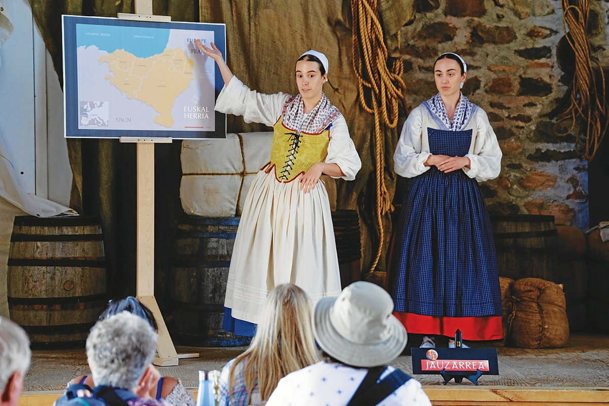 Amets Aranguren (Iruñea) eta Mirari Loyarte (Hernani), Euskal Herriari buruzko azalpenak ematen. DesRoches izeneko etxearen ondoan –garaiko taberna baten itxura duena– bisitariek panel bat aurkituko dute, gure kulturaren lehen erreferentziekin. Erakusleiho bikain honetan euskal kultura erakusten zaio munduari. (Xabi Otero | Jauzarrea)