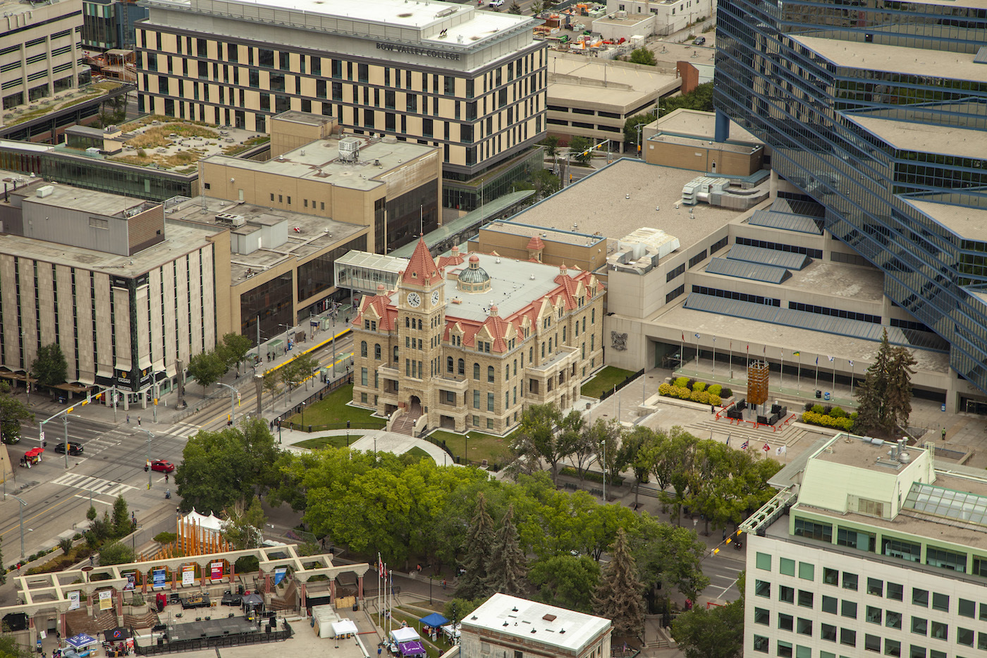 Plazaren ondoan, Macleod Trail gurutzatuta, kontrastean topatuko ditugu richardsondar estilo erromanikoko City Hall zahar eta historizista, batetik, eta New Municipal Building garaikide eta triangeluarra, bestetik. Bien artean sortu zen “Every Child Matters!!” memorial espontaneo eta herrikoia. Dozenaka haur zapatak eta pelutxek estaltzen dute zorua, irailaren 30ean kamiseta laranjekin tindatzen dena. Horien bidez salatzen da urte askoan haur indigenentzako bizitegi eskola sistema, horiek euren kulturatik eta hizkuntzatik deserrotzeko helburuarekin bahitu zituena.