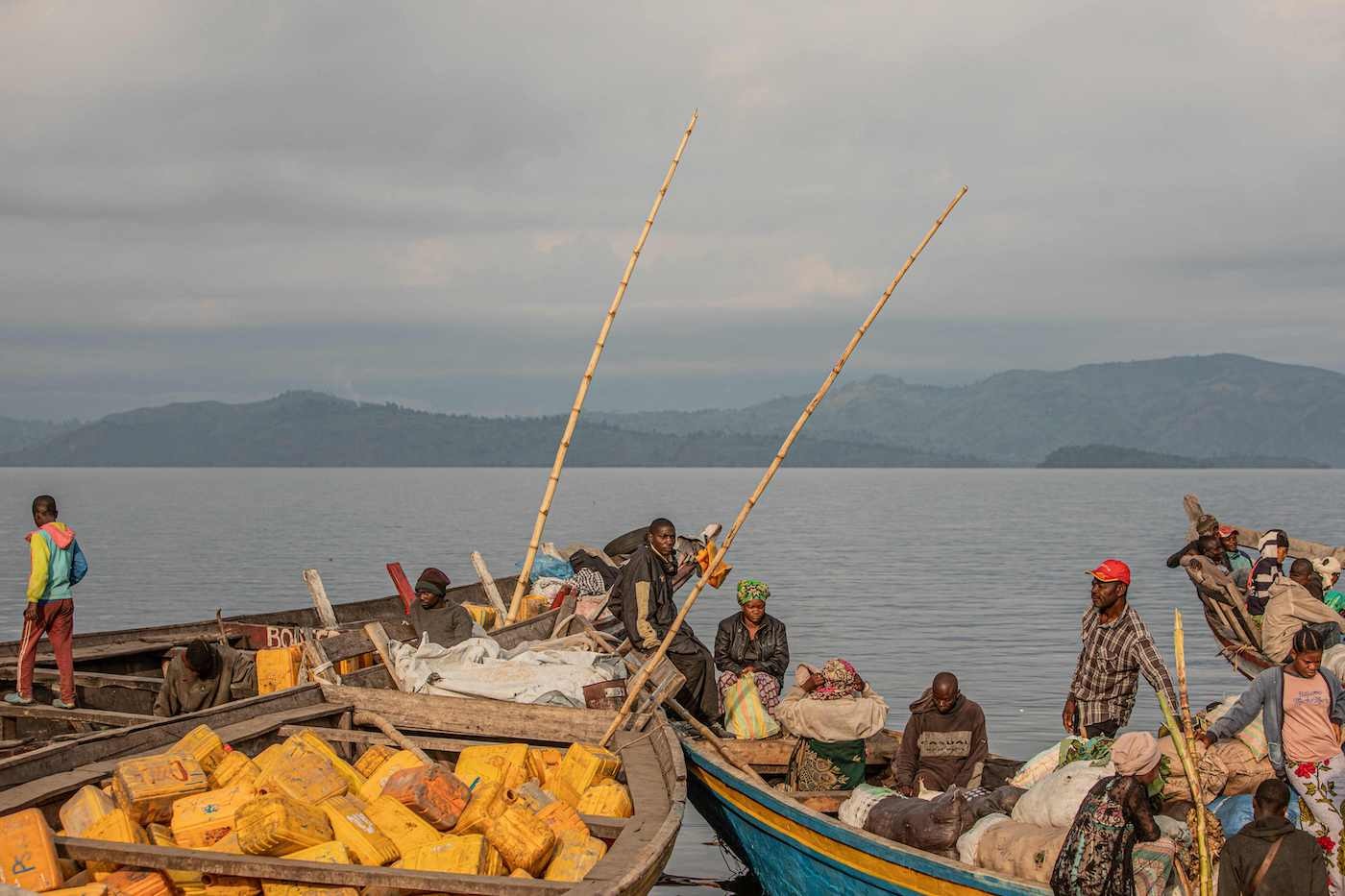 Egunsentian eta ilunsentian jendetza zalapartatsuaren irudia etengabe errepikatzen da, adibidez, Gomako kostaldean, Kongoko Errepublika Demokratikoan, zehazki Kivu lakuaren iparraldeko eta hegoaldeko ertzetan. Egurrezko ontzietan pilatutako banana- eta manioka-zakuen artean ahokatuta, bidaiariek portu onera irits daitezen erregutzen dute zeruari so. Jakin ongi dakite bidaia ez dela segurua eta hondoratzea gerta litekeela, askotan gertatzen den bezala. Alabaina, ez omen dute beste aukerarik.