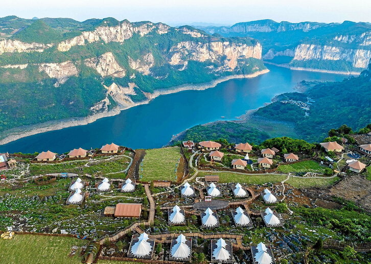 Aireko argazki honek Txinako hego-mendebaldeko Guizhou probintzian kokatutako Bijieko kanpin bat erakusten du, zehazki itsaslabar batetik hurbil eraikitako etxetxoak. Bijie ezaguna da paisaia xarmantagatik, baina baita historia eta kulturagatik ere. Izan ere, hiru probintziatako hiriburu iraultzailea izan zen Bijie. Bere leku panoramiko ospetsuen artean, Errododendroen Berrogeita Hamar Kilometroak, Zhijin Kobazuloa, Caohai, Qicaiko Lautadak, Lengshui ibaia eta Guizhou Xuanweifu daude. AFP