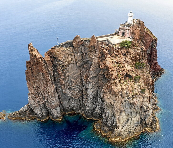 Jatorri bolkanikoko Strombolicchio uhartetxoaren aireko panoramika, Eolia irletan, Tirreniar itsasoan. Strombolitik bi kilometro ipar-ekialdera dago eta 7.620 metro karratuko azalera du. Gailurrean eraikitako itsasargira iristeko, hormigoizko eskailera dago, 200 maila baino gehiagokoa. Eta hori komeni da kontuan hartzea abiatu aurretik.