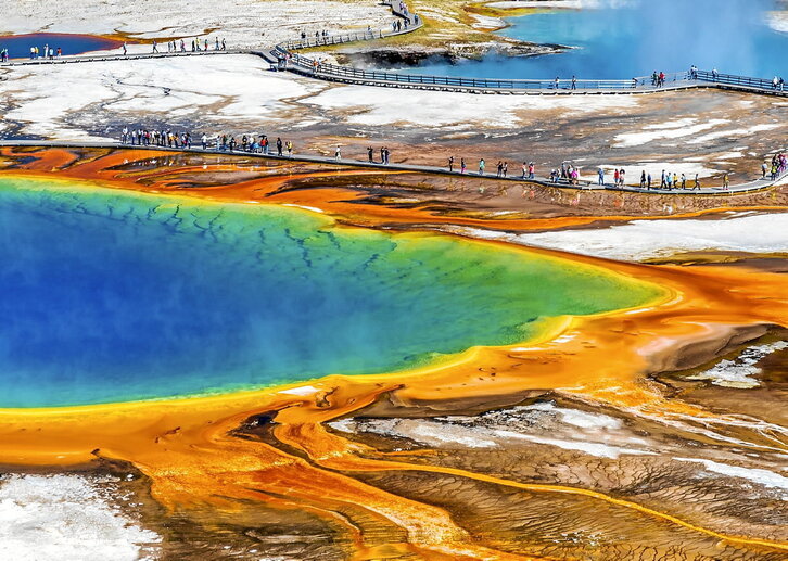 Wyoming estatuko Yellowstone Parke Nazionalak sorpresa natural ugari ditu; besteak beste, Grand Prismatic Spring delakoa.
