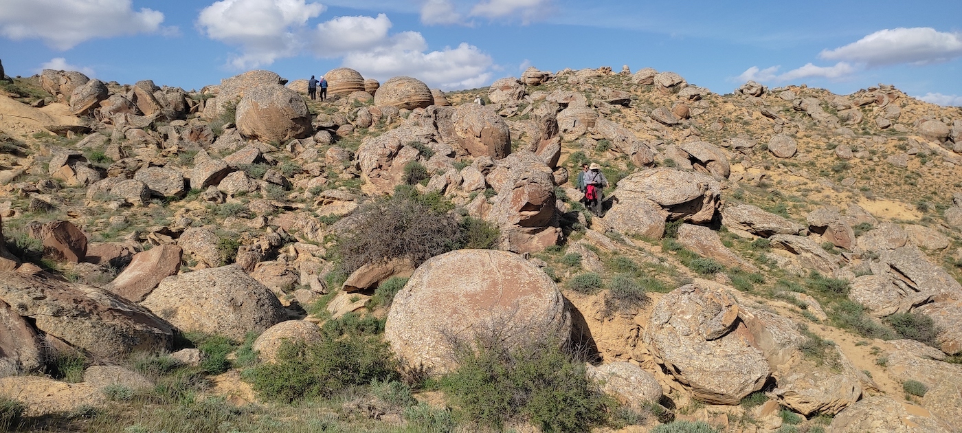 Arratsaldean Torix izeneko bailara berdera heldu gara. Belar gainean sakabanatutako ehunka borobil handi agertzen zaizkigu, gure ikuspegian galduz. Metro bat eta hiru metro arteko diametroko harrien artean gabiltza. Gogortutako hareharrizko nodulu hauek Tetis ozeanoren hondoan sortu ziren duela milioika urte. Hainbat mineral objektu baten inguruan geruzaz geruza metatuz sortu ziren, denboraren poderioz fosildu arte. Eta ingurua uniformea zenez, esfera forma hori hartu zuten. Tetis ozeano haren hondoa altxatu zenean, ura urrundu eta agerian geratu ziren baloi erraldoi hauek. Munduan badira antzeko esferak dituzten lekuak, baina beste inon baino askoz gehiago daude Mangystaun.