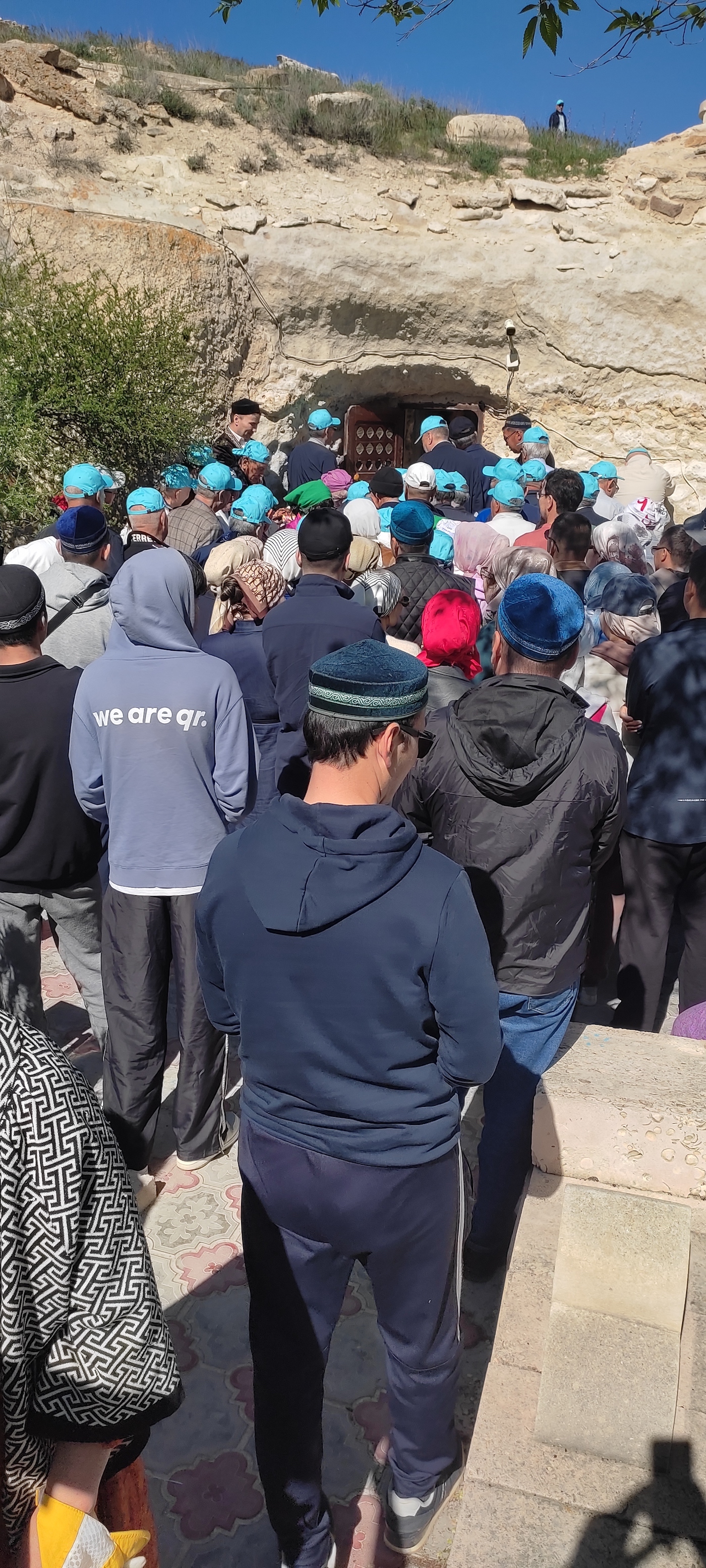 Biharamunean Xopan Ata gune erlijiosora iritsi gara autoz. Berriro ere erromes kazakhstandarrak topatu ditugu, adin guztietakoak. Hilobi eta mausoleoen artean lurrazpiko meskita txikira iritsi gara. Sartzeko giza tropel handia dago. Bertakoak oso abegikor azaldu zaizkigu eta gure txandan nazionalak zein atzerritarrok denok batera sartu gara barrura. Emakumeak eskuinaldean esertzen dira eta gizonak, ezkerraldean. Eta bertan, sabaiaren argi-zulo bakarretik sartzen den eguzki-izpiaren gozoan, hemengo kondaira entzuteari ekin diogu. Ateratzerakoan kazakhstandarrez inguratuta gaude, denak irribarretsu guri begira, argazkiak ateratzen eta opari gisa guri lepoan zapi luzeak jartzen.