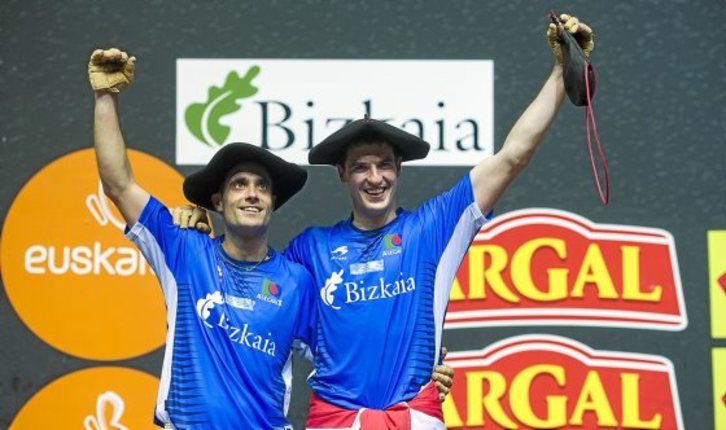 Oinatz Bengoetxea y Álvaro Untoria se estrenaron de la mano en el palmarés que más nombres diferentes tiene, el del Parejas. El de Nájera lo hace además con el aliciente de hacerlo en su primera participación, con el extra de que los técnicos de su empresa lo alinearon en el campeonato de Promoción. Curiosidades del destino, su rival en la final de ayer en el Bizkaia fue Aitor Zubieta, pelotari que «ficharon» de la competencia, al entender que mejoraba lo que podían ofrecer las promesas de Asegarce.