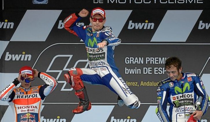 «Cuando tienes un periodo de no estar en el podio, un buen resultado te permite fortalecer esa confianza, y espero que en Le Mans vuelva a pilotar igual que lo suelo hacer». Era la conjura que hacía Jorge Lorenzo, tras recuperar la senda del triunfo a lomos de su Yamaha en la pista de Jerez. «Es la carrera más especial que puedes ganar y sobre todo después de tantos meses de decepciones», añadió. Dominó de principio a fin. No se le podía escapar y no se le escapó, así que su celebración tras cruzar la línea de meta y abrazarse a su equipo no era para menos. Ganó seguido de Marc Márquez y ‘Doc’ Rossi, que sigue haciendo leyenda con su 200º podio.