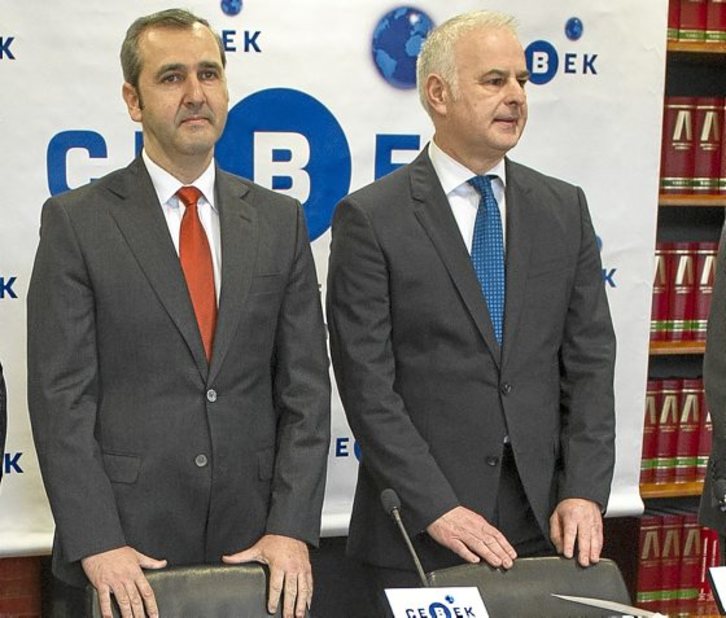 El presidente y el secretario general de Cebek, Iñaki Garcinuño y Francisco Javier Azpiazu, analizaron en una rueda de prensa el escenario económico de Bizkaia, un día antes de que la patronal vizcaína celebre su asamblea anual. Azpiazu subrayó que el principio de acuerdo alcanzado en Madrid no habla solo de salarios, sino que incluye «medidas para mejorar la competitividad» de las empresas. «En Euskadi es imposible incorporar la flexibilidad por el claro rechazo sindical», dijo.
