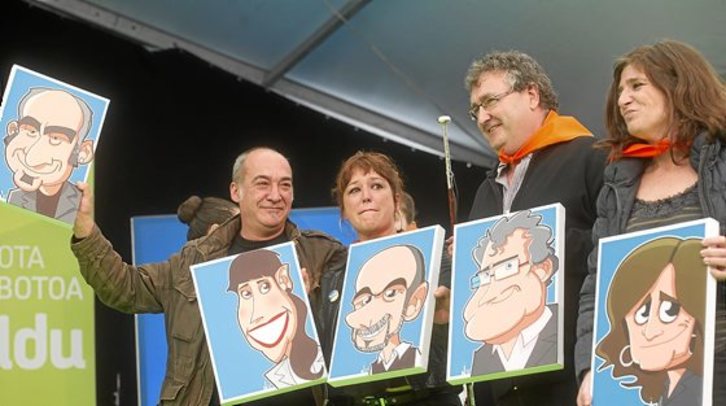 Zuloaga plazan jarritako karpak zuen itxura ikusita, herritarrekiko zilbor-heste sendoa du EH Bilduk. Prestaturiko 600 bat aulkiak eskas gelditu ziren eta beste 200 lagunek kanpotik jarraitu behar izan zuten ekitaldia (EAJk Donostian eginiko ekitaldi jendetsuena laukoiztu zuten, beraz). Inkesten gainetik, hitza herritarrek dutela esan zuten Garitanok, Izagirrek eta Olanok. Ildo beretik, euskal herritarren erabakia errespetatzen ez dutenekin ez dutela inolako itunik egingo nabarmendu zuen ahaldungai nagusiak.