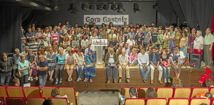 El escenario del salón de actos del Centro Cívico Aldabe se quedó pequeño para acoger a los gasteiztarras que, convocados por Gora Gasteiz, acudieron a pedir a los partidos que elijan un alcalde que no sea racista y no pretenda retener el poder a base de crear crispación. Aseguran que es el momento de pasar de las declaraciones a los hechos.