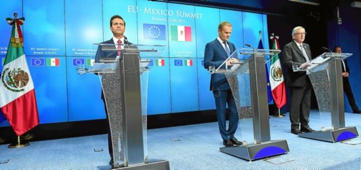 En una rueda de prensa junto a los presidentes de la Comisión Europea, Jean-Claude Juncker, y del Consejo Europeo, Donald Tusk, al término de la cumbre bilateral celebrada en Bruselas, anunció «un compromiso puntual y formal» para que esa cuestión «sea una asignatura» para su país. Tusk y Juncker evitaron responder si el tema de los derechos humanos en México iba a ser un obstáculo para la negociación bilateral, mientras Peña Nieto citaba los «mecanismos legales» de su país para atajar ese problema y «proteger a víctimas y a familiares».
