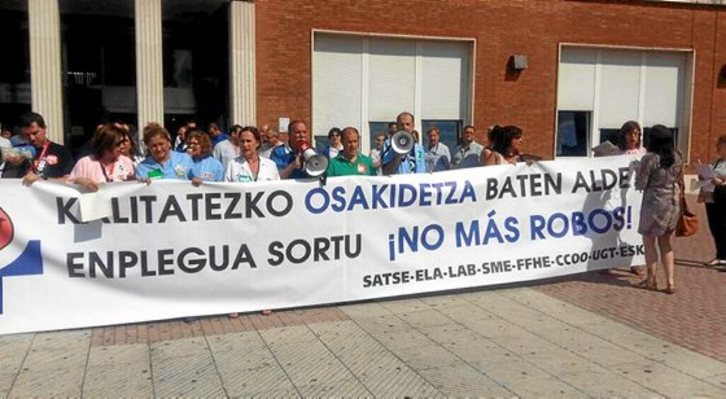 Convocados por SATSE, ELA, LAB, SME, FFHH, CCOO, UGT y ESK, los trabajadores de Osakidetza se concentraron ayer a las puertas de los centros de trabajo para denunciar la «política impositiva» de la dirección y que «los recortes están deteriorando el servicio sanitario».