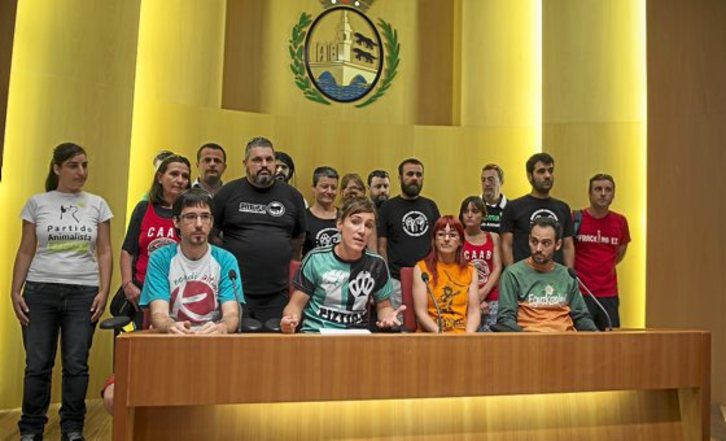 Decenas de comparsas, grupos políticos y colectivos sociales presentaron ayer en Bilbo un manifiesto en el que abogan por unas fiestas sin espectáculos con animales. Además, instan a las autoridades a que tomen medidas para que Aste Nagusia «no se tiña de sangre y sufrimiento».