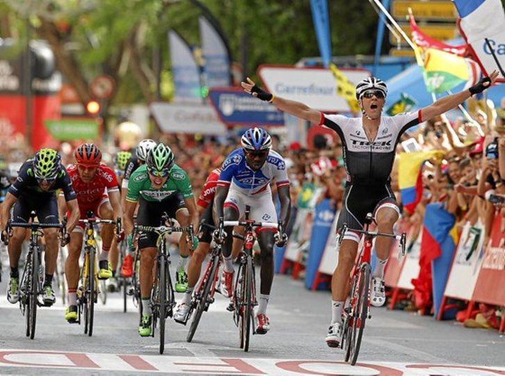 Se formó en cabeza de carrera un terceto con Elissonde (FDJ), Losada (Katusha) y Gonçalves (Caja Rural), que fueron atrapados a falta de tres kilómetros gracias al trabajo del Trek, especialmente de Haimar Zubeldia, que encontró recompensa con la victoria al sprint de Stuyven.