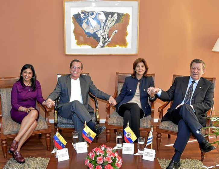 El supuesto incidente se produjo mientras las cancilleres de Venezuela, Dulcy Rodríguez, y la de Colombia, María Angela Holguín, estaban reunidas en Quito para tratar de buscar una solución a la crisis fronteriza y concretar un encuentro entre los presidentes de ambos países. Al término de la reunión, que duró cuatro horas, comparecieron ante los medios junto al titular de Exteriores ecuatoriano Ricardo Patiño, quien ejerció de mediador en representación de la presidencia de la Comunidad de Estados Latinoamericanos y Caribeños (CELAC), y junto al canciller uruguayo, Rodolfo Nin, quien acudió por Unasur.