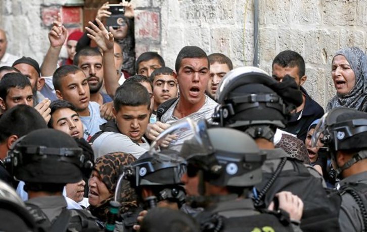 Uri Ariel Israelgo Nekazaritza ministroa eta eskuin muturreko kide ugari Jerusalemeko Meskiten Zelaigunera joan ziren atzo, eta bertan zeuden musulmanen erreakzioa eragin zuten. Dozenaka zauritu. Abbasek, Jordaniak eta Egiptok ere gaitzetsi zuten Israelen jarrera.