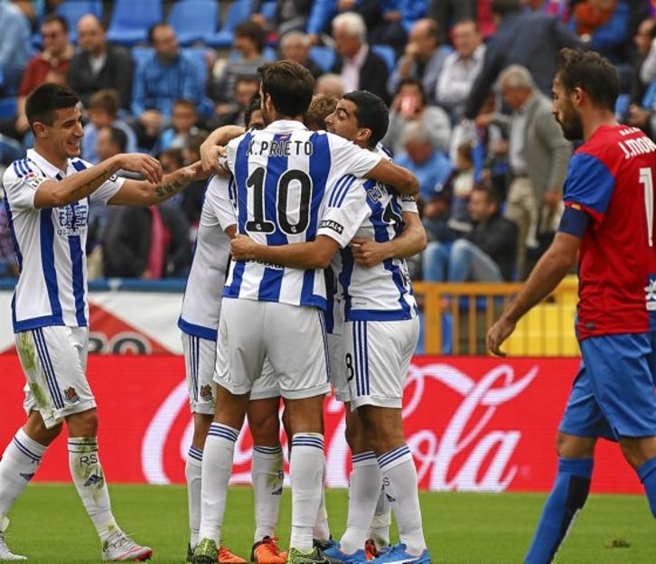 Bastaron ocho minutos para que Xabi Prieto, discutir la importancia del capitán en este equipo es un disparate, regalara un gol a Vela, que no acertó en una situación inmejorable, y para que Agirretxe, con un cambio de juego sensacional, diera al mexicano una segunda opción igual de clara para que marcara su primer gol de la temporada.