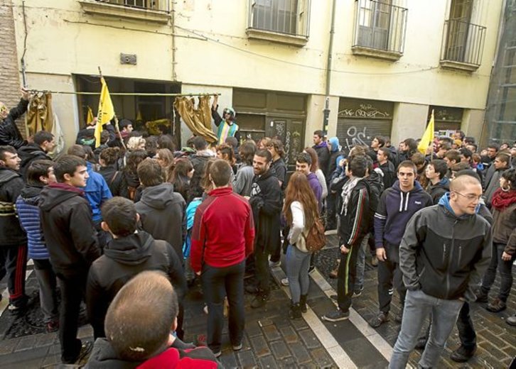 Decenas de jóvenes ocuparon ayer un inmueble en la calle Compañía de Iruñea, adyacente a la de San Agustín en que se ubicaba el antiguo del Euskal Jai. La ocupación del portal número 3 tuvo lugar al término de una nutrida kalejira, convocada bajo el lema «Ordua da, gaztetxea», y que evocaba el local desalojado policialmente hace once años y derribado después.