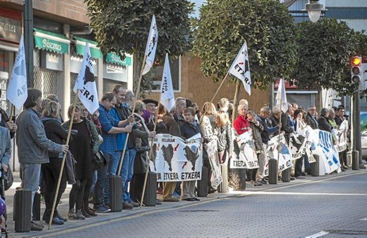 En estas fechas navideñas se suceden las iniciativas a favor de los presos. Ayer, en Iruñea (310 personas), Gasteiz (350), Donostia (111), Irurtzun (54), Getaria (17), Muskiz (29), Lemoiz (20), Fruiz (27), Aulesti (165), Hernani (105; el jueves, 650), Barañain (24), Galdakao (53), Zumaia (50), Bera (15; el jueves, 35) y decenas en Santutxu, en la imagen. El jueves, en Ermua (30) y Legazpi (30). El miércoles, 85 en Iturrama.