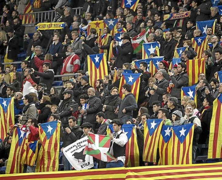 Pocos le dieron a Albiol el protagonismo que buscaba. Olvidando por un día, y por fortuna, las redes sociales, la afición que se acercó con tiempo al estadio buscó cobijo en bares como el ‘3 copas’, valor seguro en días de escasa entrada en el Camp Nou. Allí se dieron cita catalanes que optaron por alargar Sant Esteve (era festivo ayer en Barcelona) y algún que otro vasco que, luciendo orgullo de aldeano, descubrió la existencia de máquinas que cambian billetes por monedas. Sí, los tópicos se dieron un festín ayer. Sea como sea, lo más selecto de ambas aficiones acabó unido ayer con los consabidos cánticos de «In-Inde-Independència» y «Voti voti voti, espanyol qui no voti». Conforme las tres copas se convertían en cuatro y cinco (y seis y siete), los catalanes se arrancaron a enseñar el «Cant dels Maulets», recibiendo a cambio clases particulares del «Hator, hator». El partido, pura anécdota.