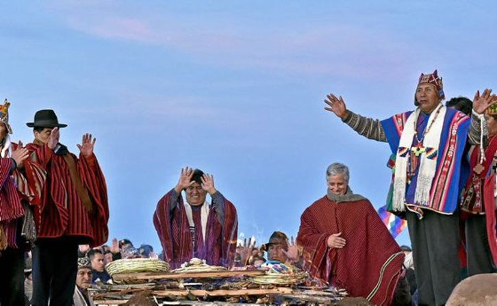 «Nuestro agradecimiento en estos diez años de servicio al pueblo boliviano. Con el hermano (vicepresidente) Álvaro (García Linera) nunca nos hemos sentido abandonados por los movimientos sociales, por el movimiento indígena», afirmó Morales en un breve discurso pronunciado en la madrugada, tras la salida del sol.