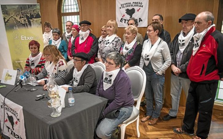 «Es necesario que todos nosotros nos activemos y que renovemos y reforcemos nuestro compromiso de poner fin a una política de excepción vulneradora de derechos». Así lo manifestaron ayer miembros de Etxerat en Iruñea durante una rueda de prensa en la que volvieron a mostrar su rechazo a la dispersión de presos vascos tras el accidente sufrido por un allegado de Olga Comes, encarcelada en la prisión de Mansilla, a 370 kilómetros de su domicilio familiar.