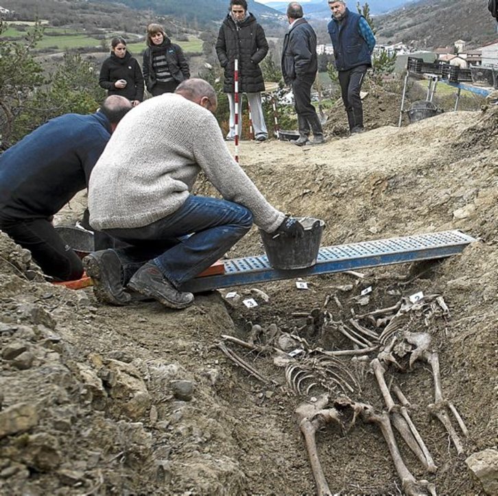 El hallazgo de los restos fue bastante rápido, ya que los técnicos de Aranzadi habían realizado previamente trabajos de prospección. El forense Paco Etxeberria también participó en las exhumaciones y, a falta de realizar todas las pruebas pertinentes, adelantó que dos de los cráneos hallados indican que podrían haber muerto por disparos.