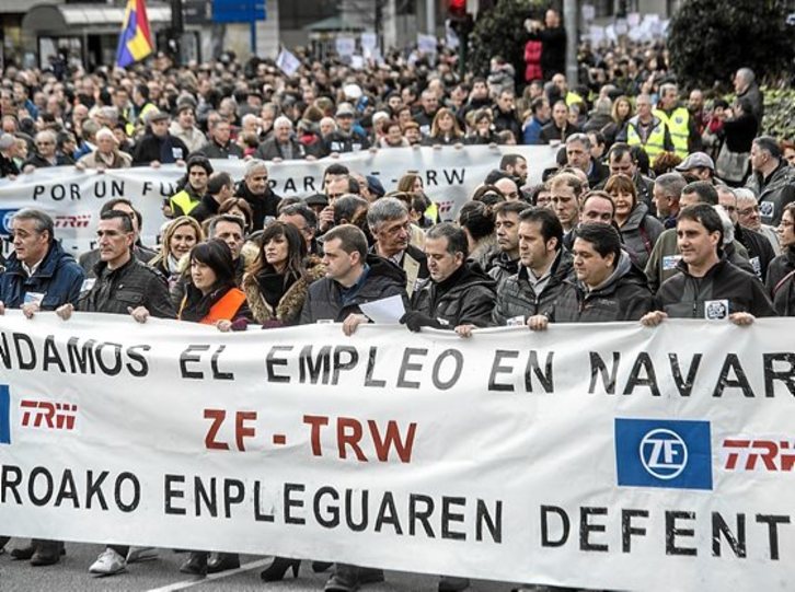 «No estamos solos en la defensa de un derecho democrático como es el derecho al trabajo», destacó el comité, que añadió que el ataque que están sufriendo por parte de la multinacional ZF-TRW afecta a toda la sociedad navarra. En este sentido, recordaron que, además de su caso, actualmente en Nafarroa se viven episodios similares en Alstom, ICF, Cousin Frères y Legrand. Los trabajadores de ZF-TRW explicaron que su factoría lleva más de medio siglo en Nafarroa y la amenaza de destrucción de 250 puestos de trabajo se debe a que no se ha invertido lo suficiente. Pese a ello, la fábrica navarra continúa siendo rentable.