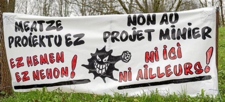 La cuestión empezó a plantearse en otoño, cuando el prefecto consultó a las municipalidades de Ainhoa, Kanbo, Ezpeleta, Haltsu, Itsasu, Jatsu, Larresoro, Sara, Senpere, Zuraide y Uztaritze sobre su posición respecto al proyecto minero que pretende, gracias a que las nuevas técnicas y maquinarias lo permiten, realizar prospecciones para extraer el oro que queda en los vestigios de las minas a cielo abierto que fueron explotadas en la antigüedad. Todas ellas se manifestaron en contra del proyecto.