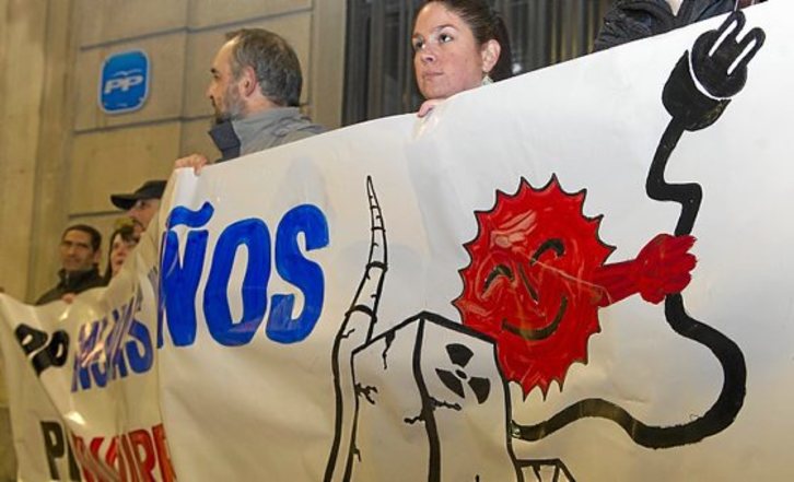 Decenas de personas se concentraron ayer frente a la sede del PP en Gasteiz para exigir que no se reabra la central de Garoña. Los asistentes a la cita desplegaron una pancarta en la que se podía leer: “PP no más engaños. Garoña itxi orain ta betiko”.