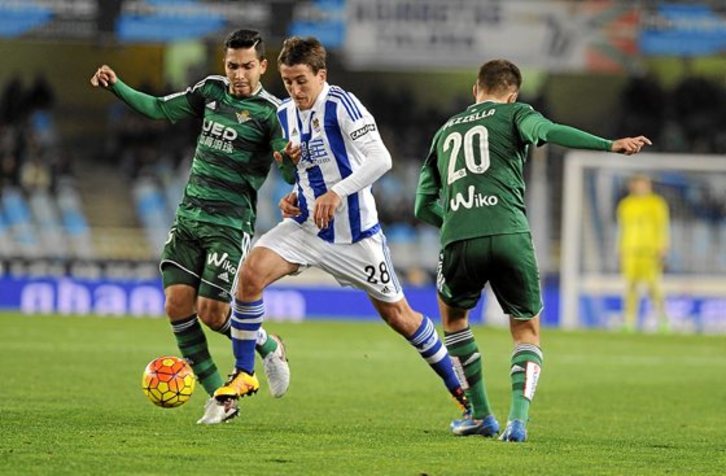Mikel Oyarzabal, eibartarra que cumplirá 19 años el 21 de abril, se ha ganado un puesto en el once de Eusebio en las últimas dos jornadas y marcó el lunes en Cornellá su primer gol con la Real. Es un caso atípico en el mundo del fútbol porque sus padres, a pesar de tener desde alevines la posibilidad de llevarlo al Athletic y ofertas de todos los representantes de jugadores de la zona, quisieron encargarse de su futuro ellos y que siguiera en el club de su localidad hasta que en cadetes fichó por la Real.