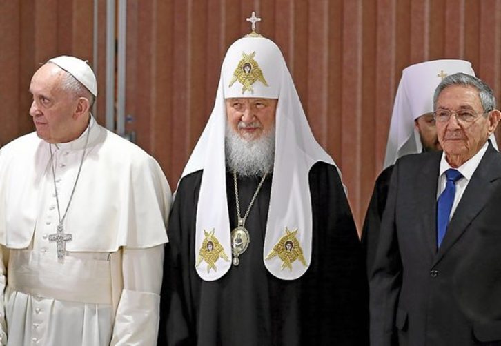 Por si fuera poco, La Habana acogió el viernes el primer acercamiento entre las iglesias de Occidente y Oriente desde el cisma de 1054. Castro, un ateo de 84 años, fue el testigo de excepción de los besos y abrazos entre el papa Francisco y el patriarca ruso Kirill. «Si sigue así, Cuba será la capital de la unidad», sentenció Francisco.
