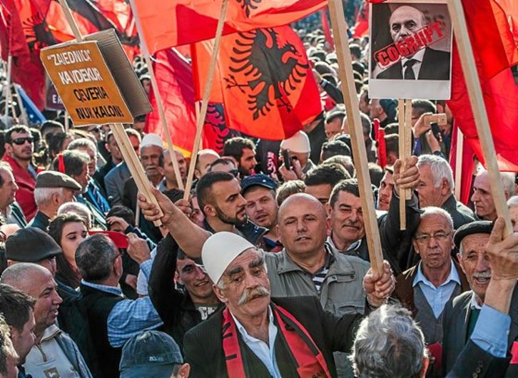 No en vano tanto la manifestación como la reciente ola de protestas, que ha incluido protestas reprimidas por la Policía y la interrupción de varias sesiones del Parlamento con el lanzamiento de gas lacrimógeno, está liderada por el principal grupo opositor, Vetevendosje (Autodeterminación), muy crítico con la independencia de Kosovo tutelada por EEUU y la UE –en el último caso a cambio de forzar el entendimiento con Serbia–, y que coquetea con la exigencia histórica de integrara el enclave en una suerte de Gran Albania.