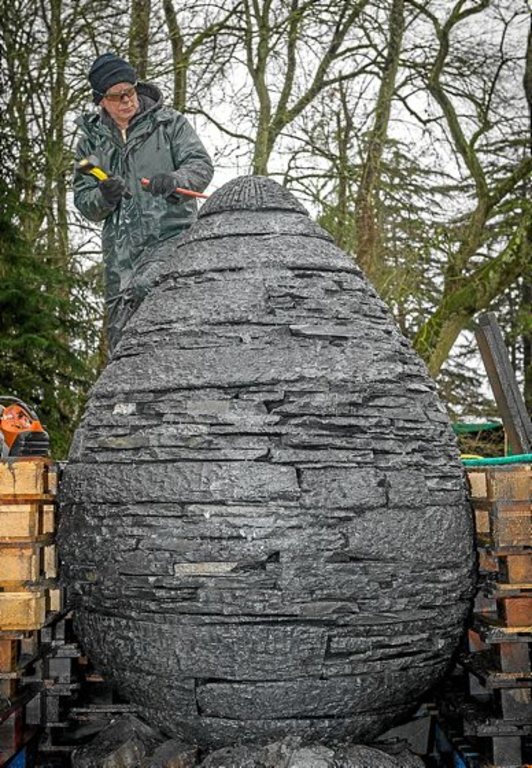 El artista escocés Andy Goldsworthy muestra el progreso de la instalación que denomina «mojón en forma de huevo de pizarra» y en la que trabaja en el castillo de Chaumont sur Loire. El escultor, que realiza todo tipo de trabajos utilizando materiales que encuentra en su entorno, explora el vínculo con la naturaleza en sus obras, integradas en paisajes tan diversos como Canadá, Japón, Noruega, Estatos Unidos y el Polo Norte.