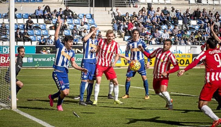 Tuvo que afrontar el Alavés el duelo con el paso cambiado para tratar de neutralizar la ventaja visitante. No dio la sensación el rival andaluz de llevar 20 semanas en puestos de descenso y sus apariciones en el área siempre generaron nerviosismo en la zaga. Una falta botada por José Ángel desde el costado izquierdo que no encontró ningún testarazo y un remate en el área pequeña de Quique abortado en última instancia por el local Laguardia, fueron la catarata de ocasiones almerienses en el primer cuarto de hora.