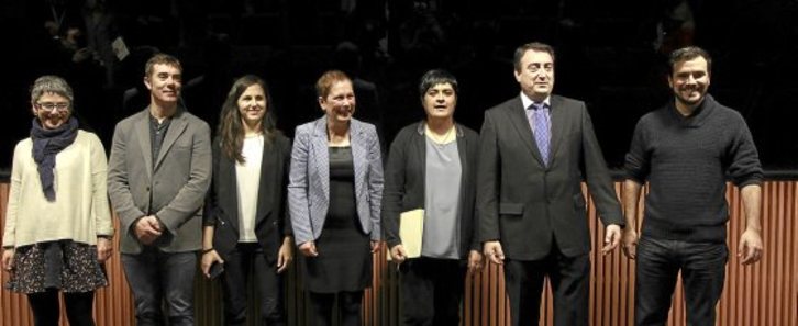 «Estamos ante una agresión inaceptable. La mayor parte de leyes son de contenido social y en ámbitos en los que Navarra tiene competencias exclusivas». Este fue uno de los mensajes principales de la comparecencia, inédita en imagen y contenido, de las formaciones del cambio en Nafarroa. Llevaron juntas a Madrid su protesta por la ofensiva continuada contra leyes aprobadas por la mayoría del Parlamento navarro, antes y después del vuelco electoral del pasado mes de mayo.