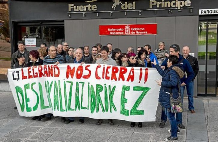 Los trabajadores de Legrand (antigua Tegui) se concentraron ayer ante la sede del Departamento de Industria en Iruñea para protestar por el anuncio de la dirección de trasladar la actividad a Madrid. Lo califican como «un ERE encubierto», porque la intención de Legrand es subcontratar el producto que se fabrica en Landaben a empresas auxiliares para ofrecer a sus 33 empleados un traslado «a puestos que no existen o no son viables».