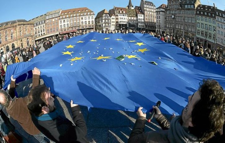Los cientos de ciudadanos vascos que se sumaron a la movilización continental tuvieron que sufrir condiciones meteorológicas &csMarker;similares a las que padecen estos días miles de personas atrapadas entre las fronteras que los gobernantes de diversos Estados se empecinan en mantener cerradas.