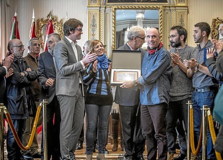 Llach compareció ante los medios de comunicación en el Ayuntamiento de Gasteiz, donde recibió un sentido homenaje por parte de la corporación municipal –asistieron todos los concejales salvo los del PP–. El recibimiento fue fruto de una iniciativa ciudadana, que el mes pasado reclamó la celebración de un acto para reconocer la labor del músico.
