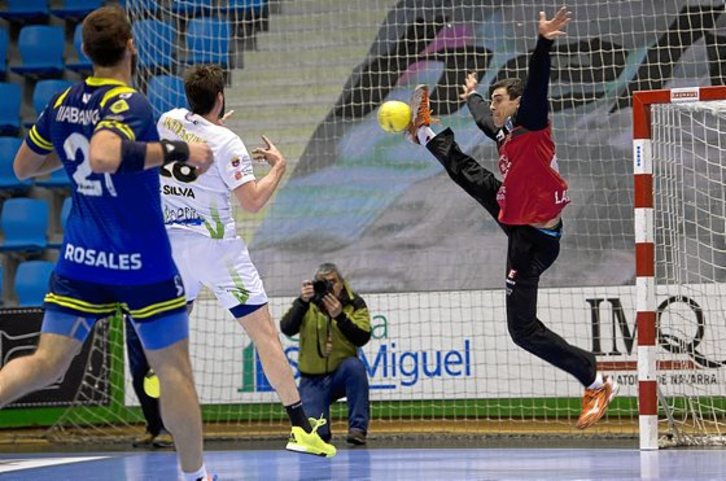 Anaitasuna cerró el partido con la máxima ventaja de todo el partido con un final brillante del portugués Jorge Silva, autor de una de las mejores jugadas del encuentro al marcar con una rosca casi imposible (35-24).