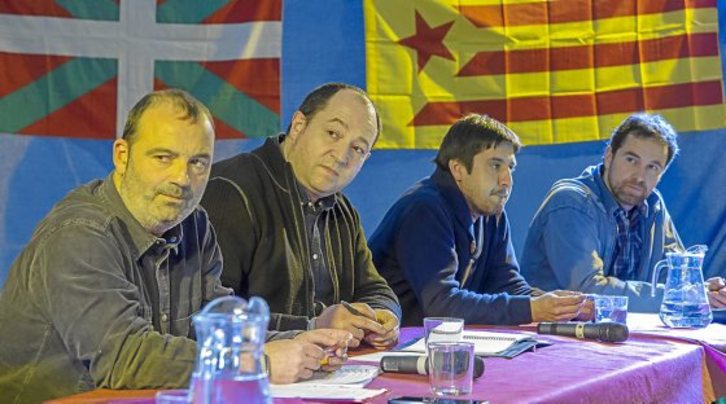 Guante de seda y, a ratos, puño cerrado. La amabilidad según Bertolt Bretch, recordado la semana pasada por Arnaldo Otegi, se paseó ayer por Segura, donde Luke Uribe-Etxebarria (PNV), Pernando Barrena (Sortu), Iker Elizalde (EH Bai) y Anjel Oiarbide (Gure Esku Dago) compartieron mesa en el marco de las jornadas organizadas anualmente por la iniciativa cultural Iparra-Hegoa, que este año se ha centrado en el proceso soberanista catalán. Después de escuchar el lunes a representantes de los partidos soberanistas y el martes a miembros de las entidades independentistas, ayer fue el turno de traer el debate a casa.